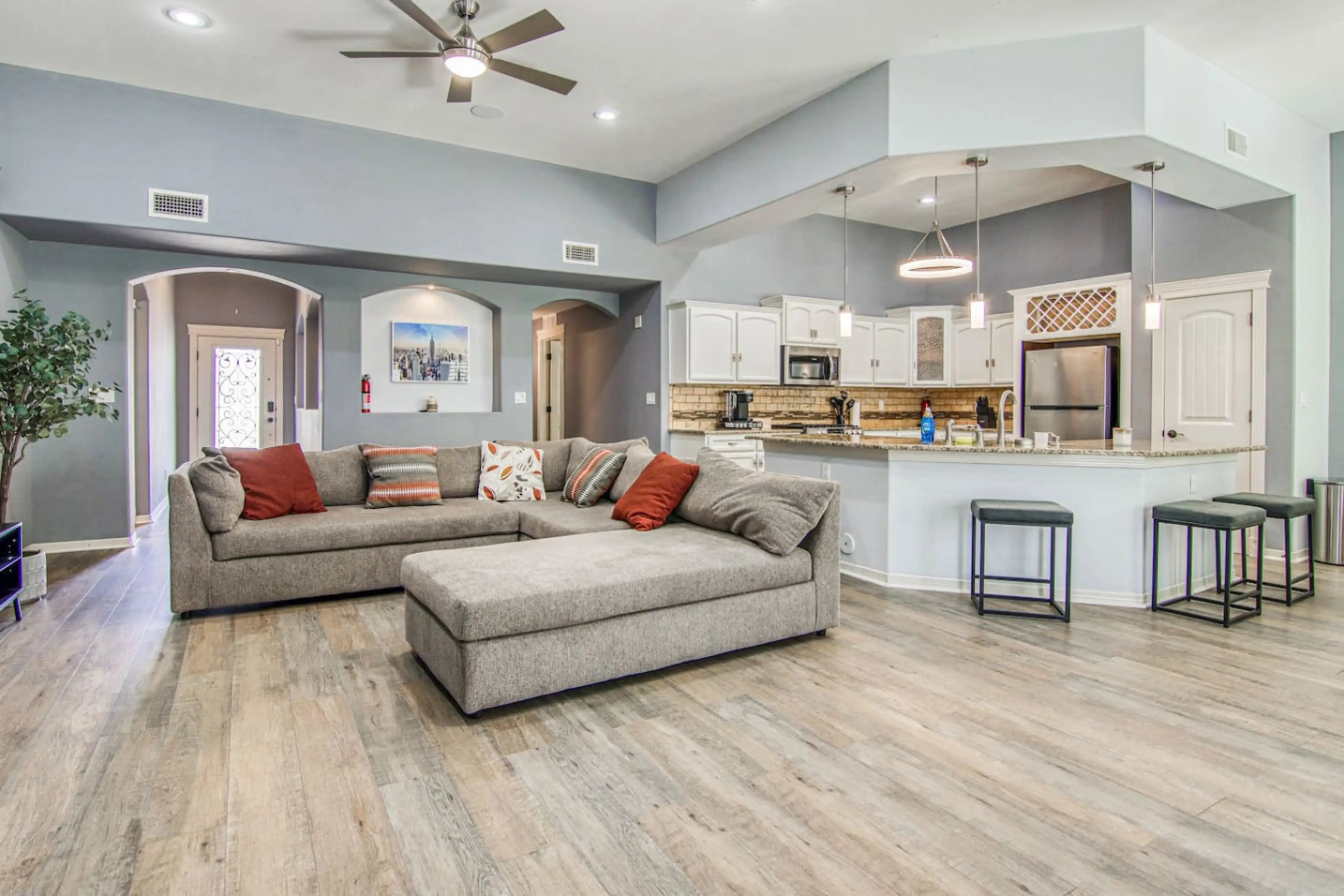 Bring the whole family to this beautiful and spacious spanish style home. The home is fully equiped with Hi Speed wifi, 3 bedrooms, and a master bedroom with a jetted tub for you to enjoy and relax. This place is your home away from home, Perfect for families visiting, business travels, first respon...